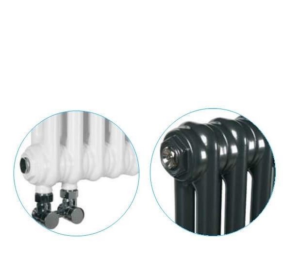 - нижнее подключение типа V, межосевое расстояние 50 мм, со встроенным термовентилем, находящееся в нижней правой или левой части радиатора (необходимо просто развернуть радиатор). При заказе радиатора TUBUS с нижним подключением типа “ V ”, следует добавить к индексу букву “V”.