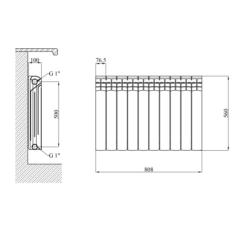 - Вес одной секции без соединительного ниппеля составляет 1,61 кг, а с ниппелем — 1,71 кг, что облегчает монтаж и транспортировку.