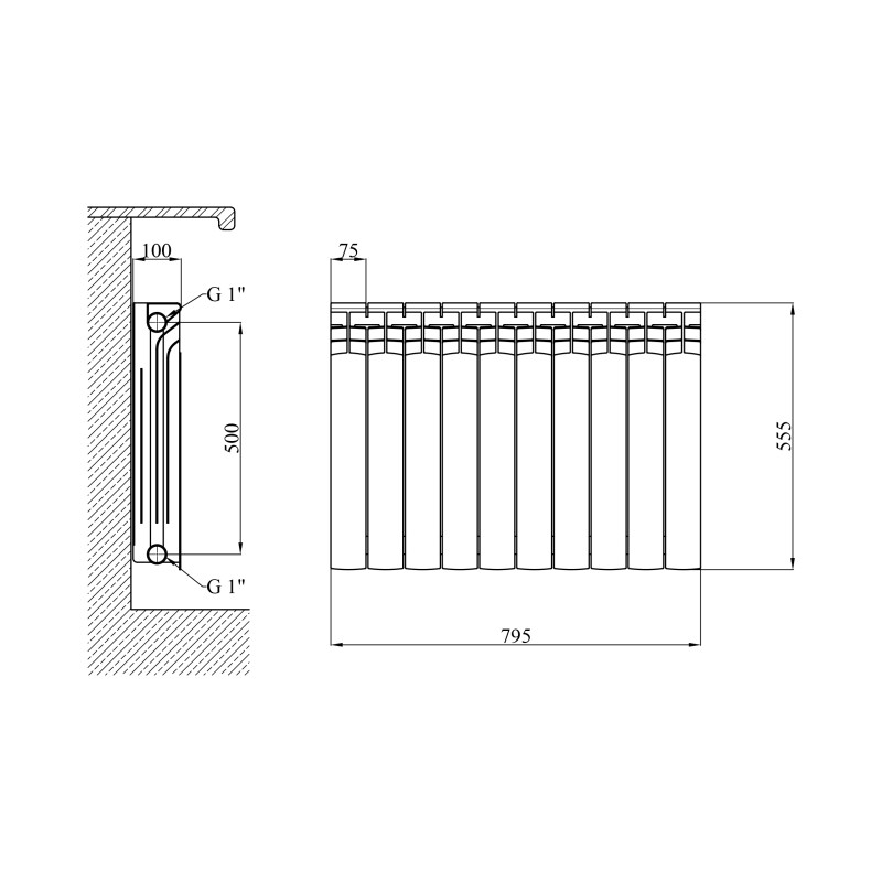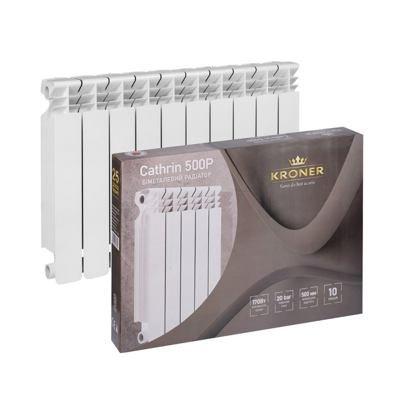 Радиатор отопления Kroner Cathrin 500Р 500/80/100 10 секций биметалл белый CV034121