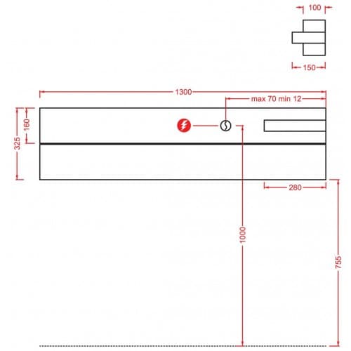 - Размер (ВхГхШ) — 325х100х1300 мм