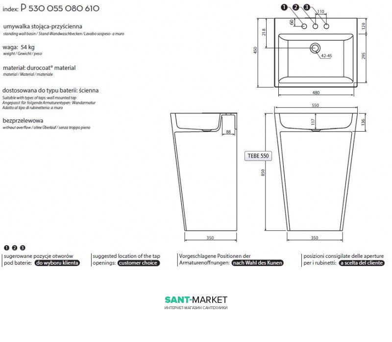 Раковина для ванной напольная Marmorin Tebe-550 белая P 530 055 020 010