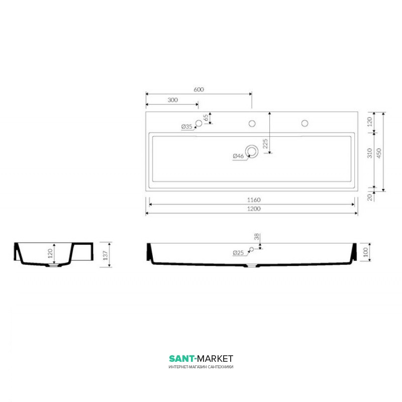 Раковина для ванной накладная двойная Marmorin коллекция Teo белая 641 120 0xx xx x