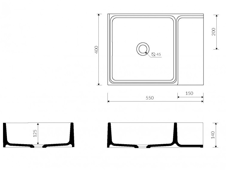- Форма раковины: прямоугольная