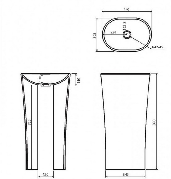 1) Раковина для ванной Marmorin Wega 44х30,5 см литой камень белый