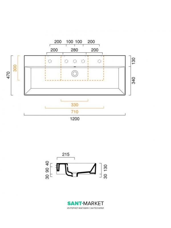 Раковина Catalano Premium, белая, без отв. под смеситель 120х47 см, 112VP00