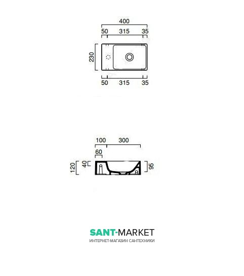Раковина для ванной подвесная Catalano VERSO 40x23 см без отв. под смеситель белая 14023VE00