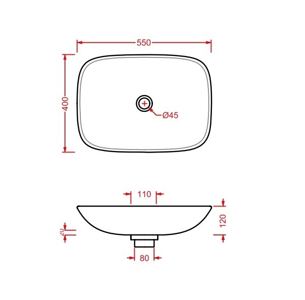 - Форма раковины: прямоугольная округлая