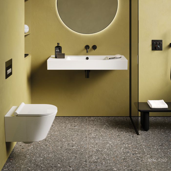 Отличительной чертой изделий Catalano является грязеотталкивающее покрытие Cataglaze. Вы спросите – в чем же секрет? А все дело в специальной эмали, которая сплавляется с керамикой при очень высоких температурах. Разница с традиционной эмалью колоссальная. Это покрытие создает барьер и грязь не прилипает к керамике. Ведь вся поверхность очень гладкая и без микротрещин – она непроницаема. Cataglaze дарит всей продукции Catalano гигиену, блеск и устойчивость к известняковым накипям.