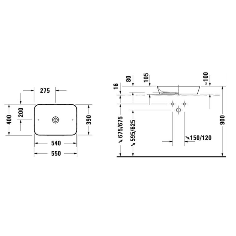 1) Раковина для ванной Duravit Cape Cod 55х40 см накладная керамика белый