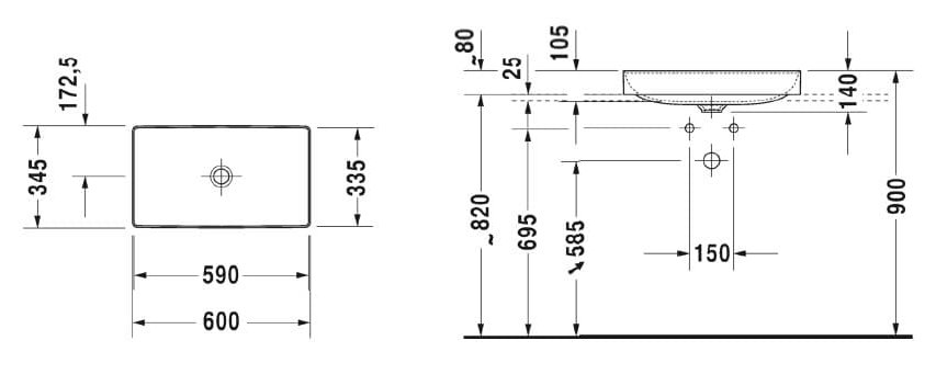 1) Раковина для ванной Duravit DuraSquare 60х34.5 см керамика белый