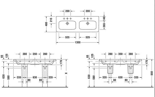 1) Раковина для ванной Duravit DuraStyle 130х44 см двойная керамика белый