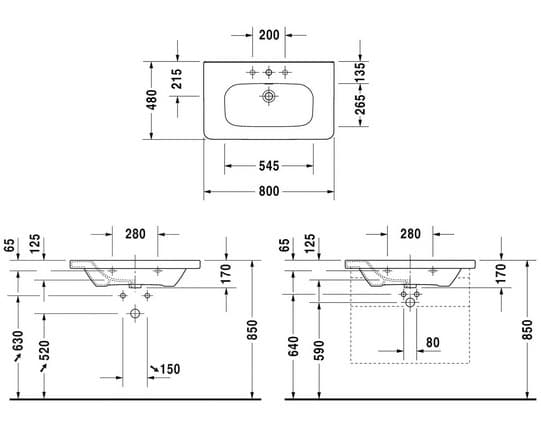 Раковина для ванной Duravit DuraStyle 80х48 см керамика белый 2320800000