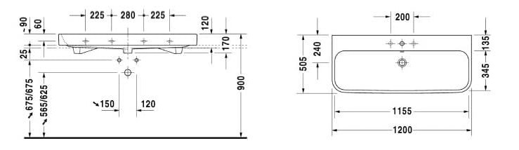 1) Раковина для ванной Duravit Happy D.2 120х50,5 см керамика белый