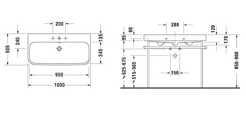 1) Раковина для ванной Duravit Happy D.2 100х50,5 см керамика белый