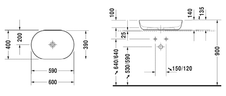 1) Раковина для ванной Duravit Luv 60х40 см керамика белый