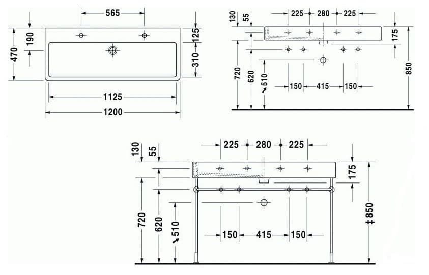 1) Раковина для ванной Duravit Vero 120х47 см керамика белый Alpin