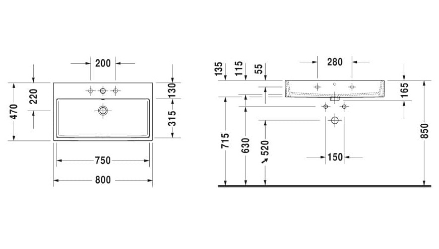 1) Раковина для ванной Duravit Vero Air подвесная/накладная 80х47 см керамика белый