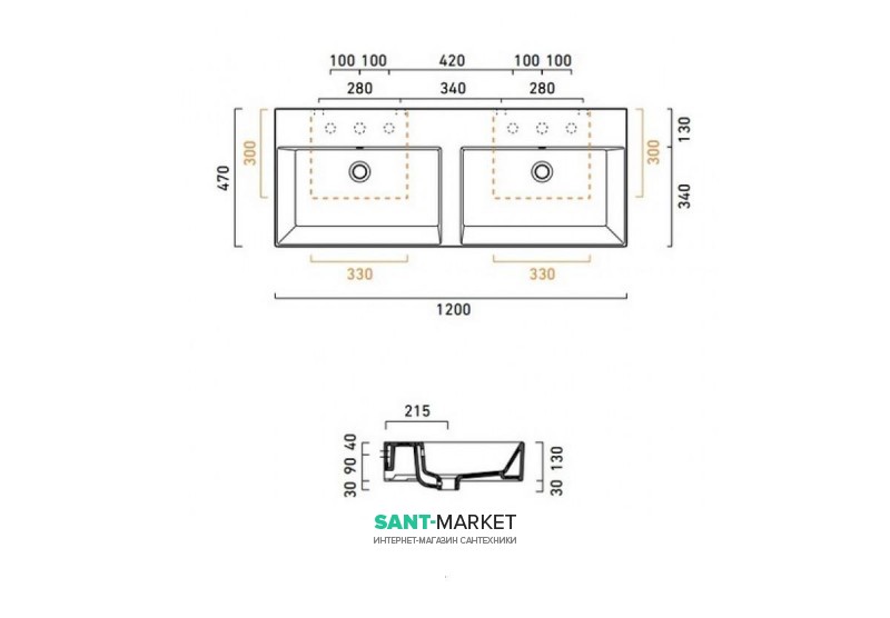 Раковина для ванной подвесная двойная Catalano Premium 120х47 см без отв. под смеситель белая 112VPD00