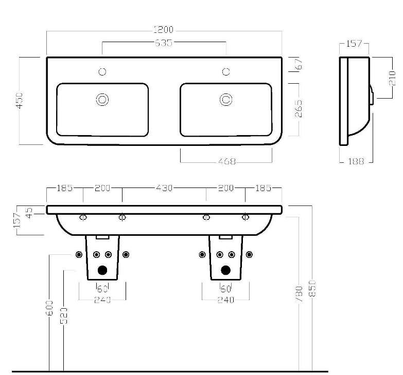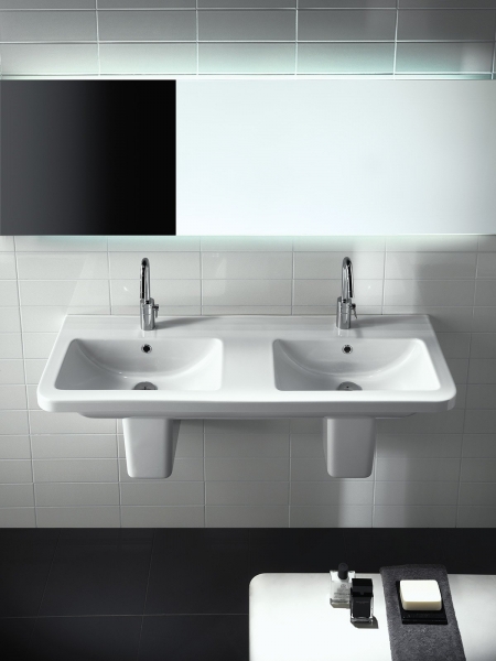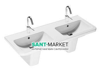 1) Раковина для ванной двойная Hatria Erika Pro 120х45 см белый