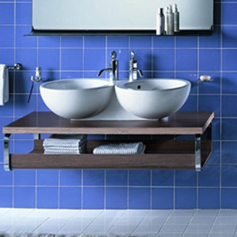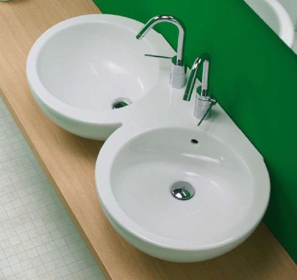 Двойная накладная раковина (92х46 см) с двумя отверстиями под два смесителя, монтаж на стену или на столешницу.