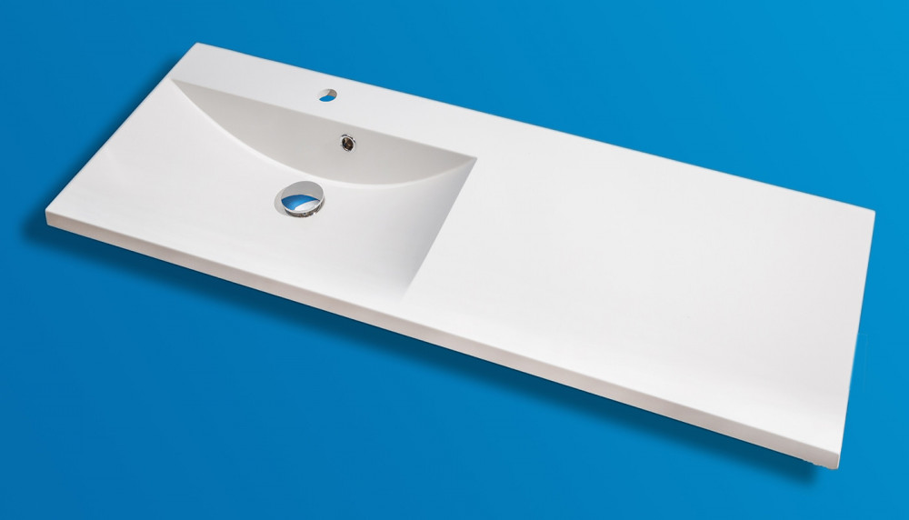 1) Раковина для ванной Fancy Marble Amelia 124,5х46,3 см левая искусственный камень белый матовый