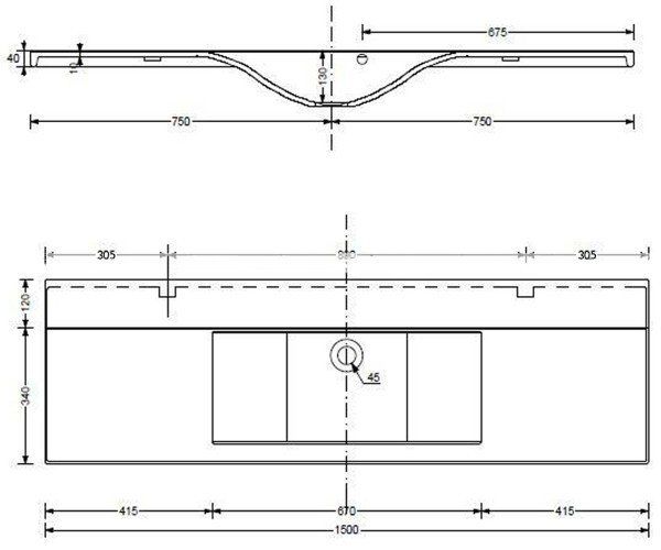 1) Раковина для ванной Fancy Marble Margo 150х46 см искусственный камень белый матовый