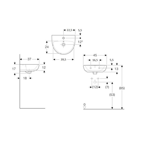 Раковина для ванной Geberit Selnova 45x37 см фарфор белый