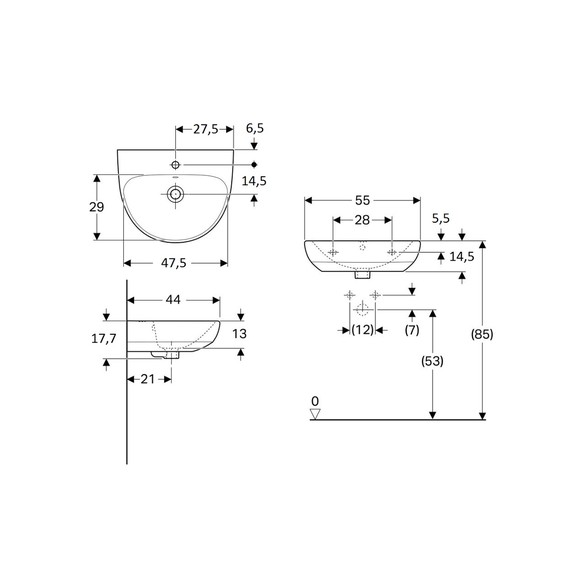 Раковина для ванной Geberit Selnova 55x44 см фарфор белый