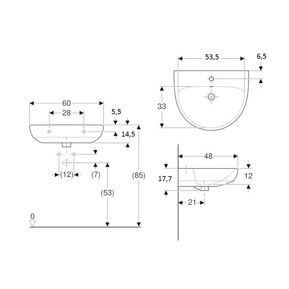Раковина для ванной Geberit Selnova 60x48 см фарфор белый