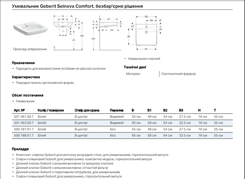Раковина для ванной Geberit Selnova Comfort 55х55 см сантехнический фарфор белый