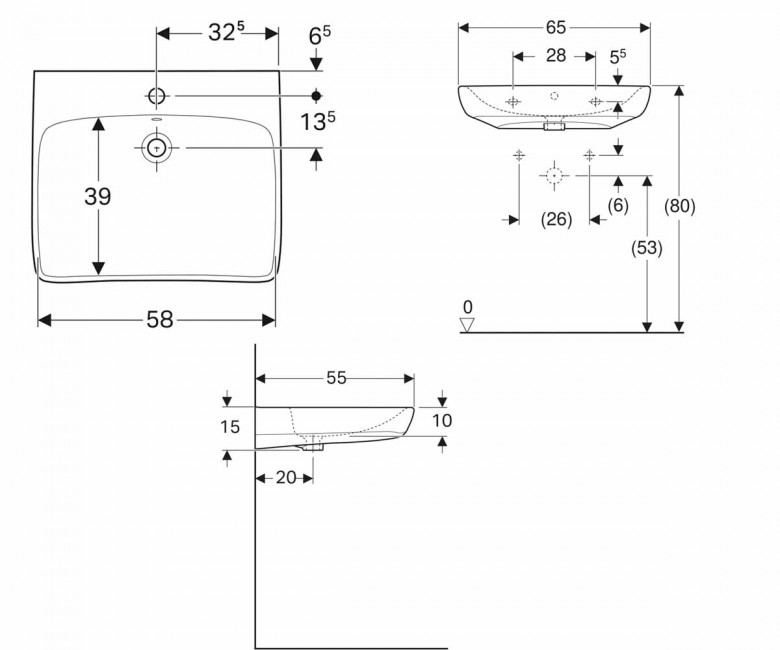 1) Раковина для ванной Geberit Selnova Comfort 65х55 см фарфор белый