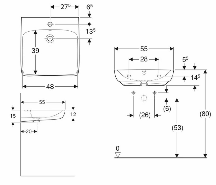 Раковина для ванной Geberit Selnova Comfort 55x55 см фарфор белый