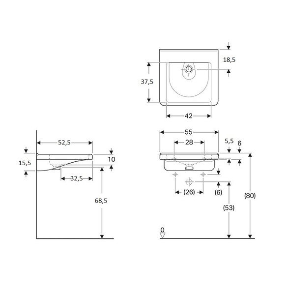 Раковина для ванной Geberit Selnova Comfort Square 55x52,5 см фарфор белый 500.787.01.1