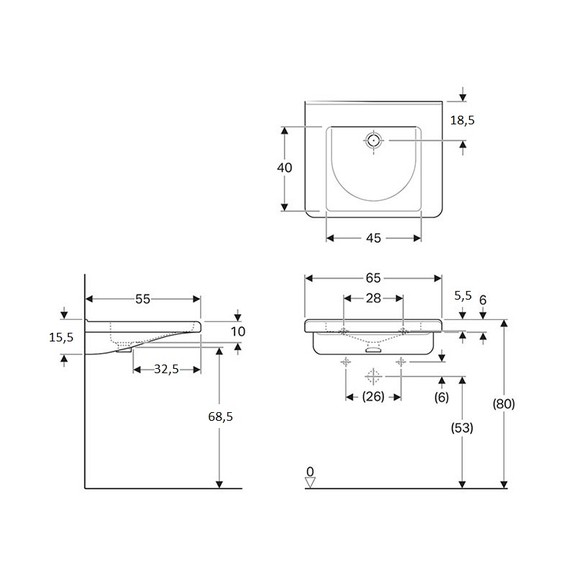 Раковина для ванной Geberit Selnova Comfort Square 65x55 см фарфор белый