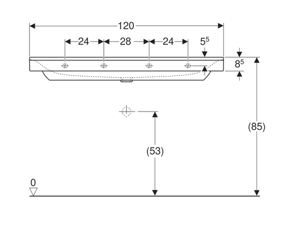 Раковина для ванной Geberit Xeno² 120 см отверстие для смесителя санфарфор белый/специальное керамическое покрытие KeraTect 500.551.01.1