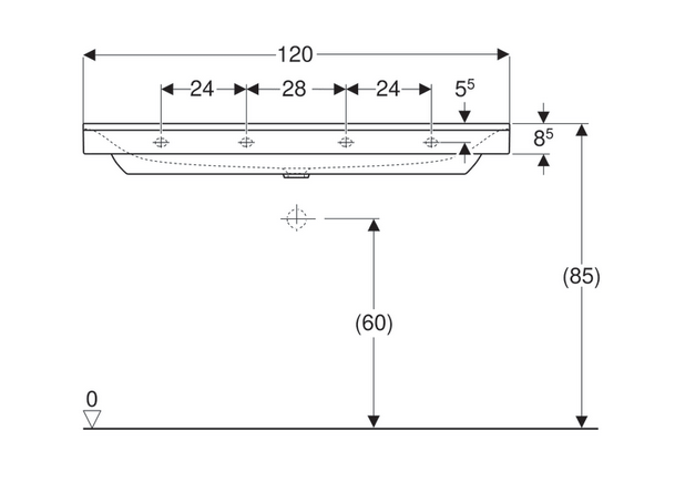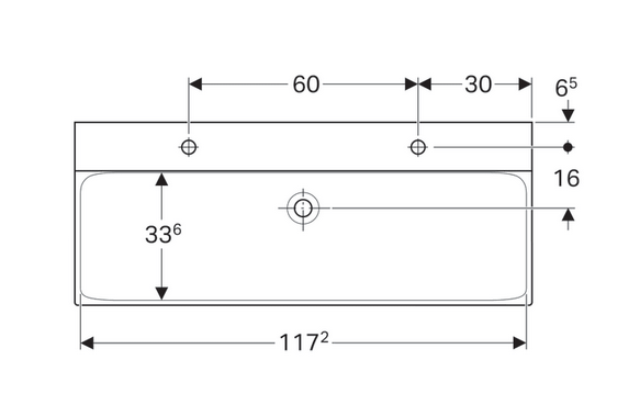 1) Раковина для ванной Geberit Xeno² 120 см два отверстия для смесителя санфарфор белый/специальное керамическое покрытие KeraTect