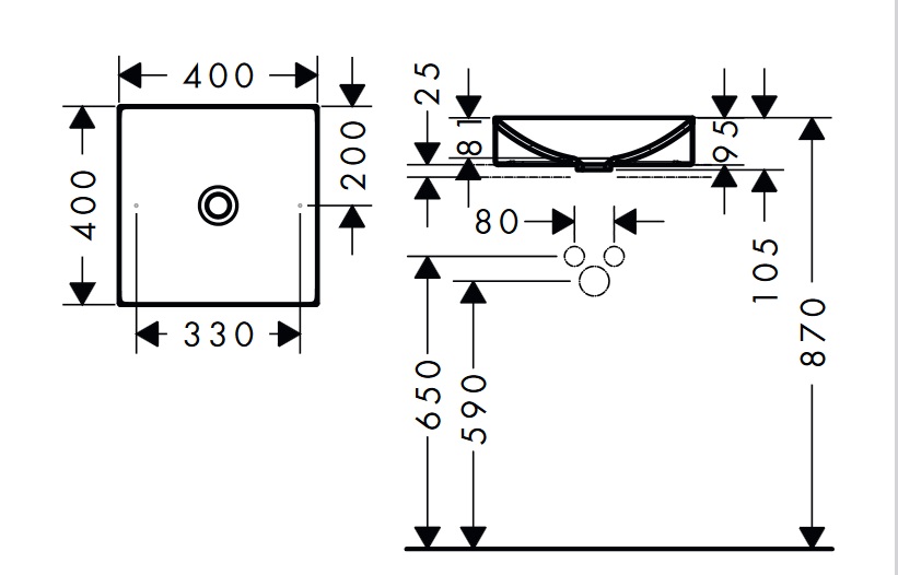 Раковина для ванной Hansgrohe Axor Suite Basins & Bathtub 40х40 см SolidSurface/металл шлифованный черный хром
