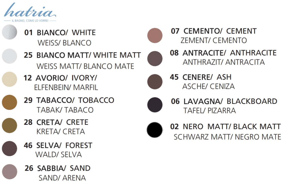 Продукция Hatria – элегантность и практичность. Hatria известна своей продукцией, которая производится из высококачественных материалов, таких как фаянс, сантехника и фарфор. Продукция компании также известна своим стильным дизайном, вдохновенным итальянской архитектурой и дизайном. Продукция Hatria доступна в более чем 80 странах мира и реализуется через сеть официальных дилеров и дистрибьюторов. К наиболее популярным продуктам Hatria относятся: