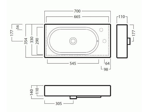 Раковина для ванной Hatria Area 70х35 см керамика белый 00YXDK01