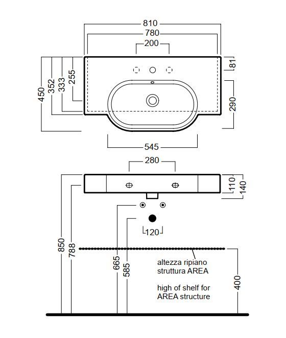 Раковина для ванной Hatria Area 81х45 см керамика белый 00Y0UP01