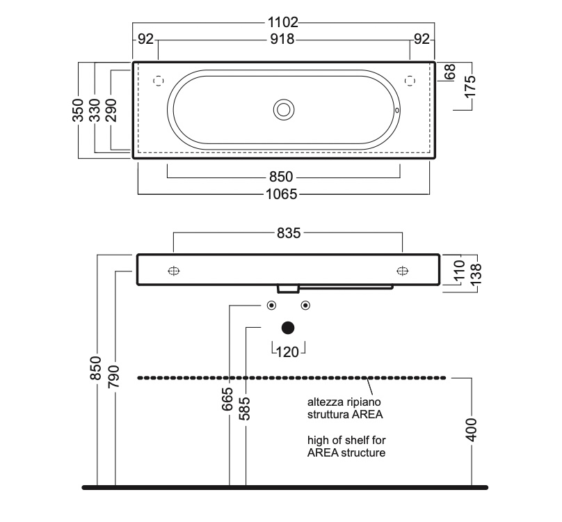 Раковина для ванной Hatria Area 90х35 см керамика белый 00Y0UE01