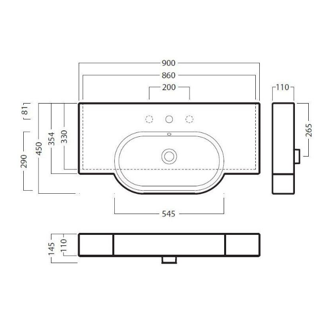Раковина для ванной Hatria Area 90х45 см керамика белый 00YXA001