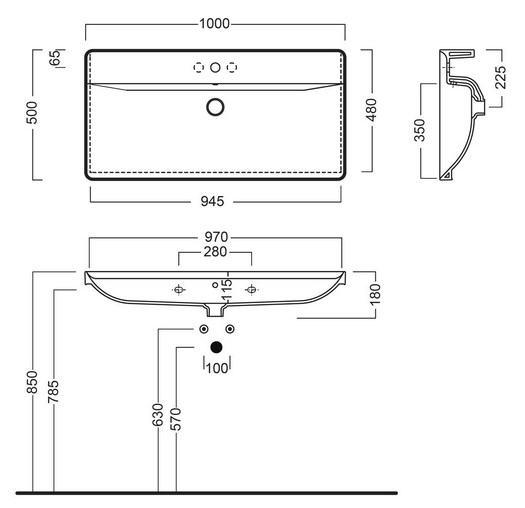 1) Раковина для ванной Hatria Canalgrande подвесная 100х50 см белый