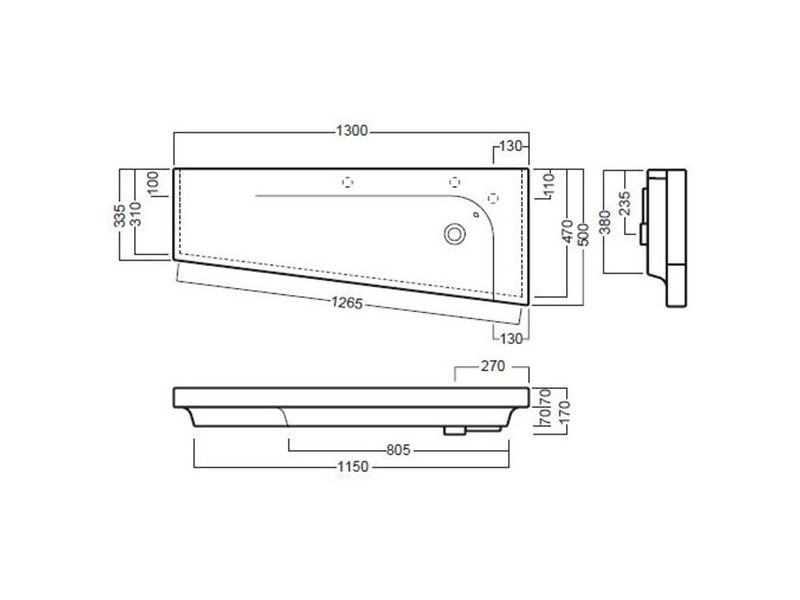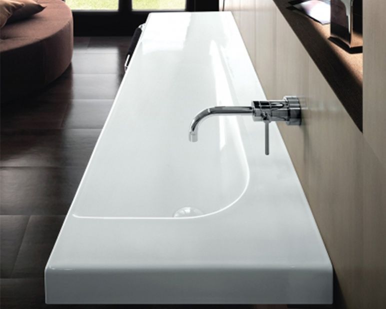 Раковина для ванной Hatria Grandangolo Т правая 130х50 см керамика белый глянцевый