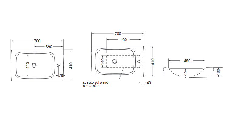 Раковина для ванной Hidra Hi-Line накладная 70х41 см санфаянс белый/розовое золото HI17 063 bianco/oro rosa