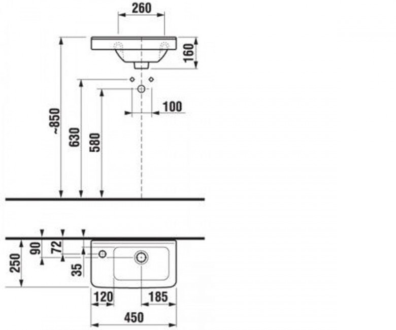 1) Раковина для ванной Jika Cubito 45 см с отверстием слева керамика белый