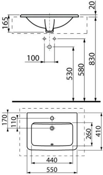 1) Раковина для ванной Jika Cubito perla 55 см встраиваемая сверху керамика белый