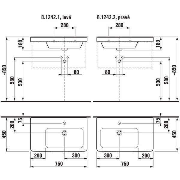 1) Раковина для ванной Jika Cubito perla 75х45 см чаша слева керамика белый