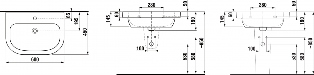 1) Раковина для ванной Jika Deep 60х45 см без отверстия белый