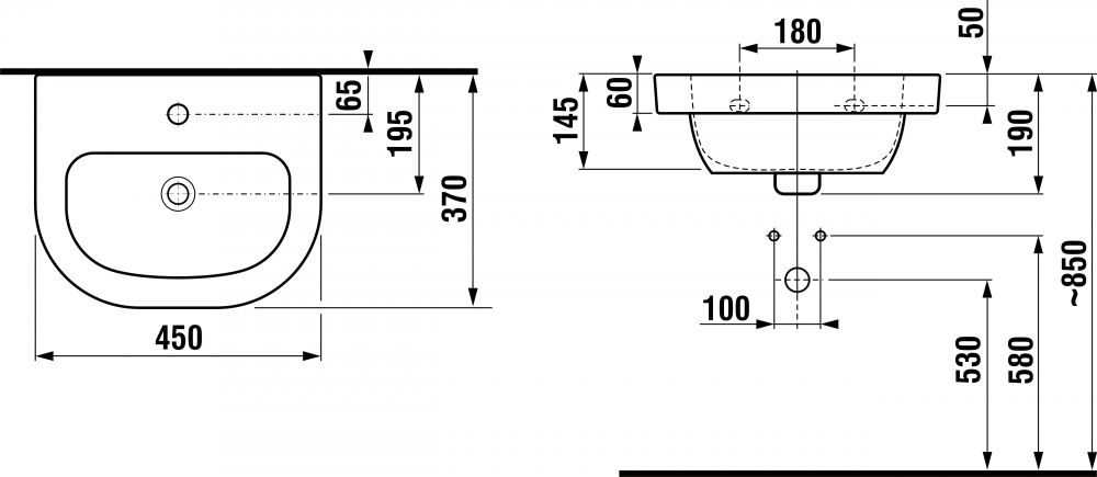 1) Раковина для ванной Jika Deep детская 45х37 см керамика белый